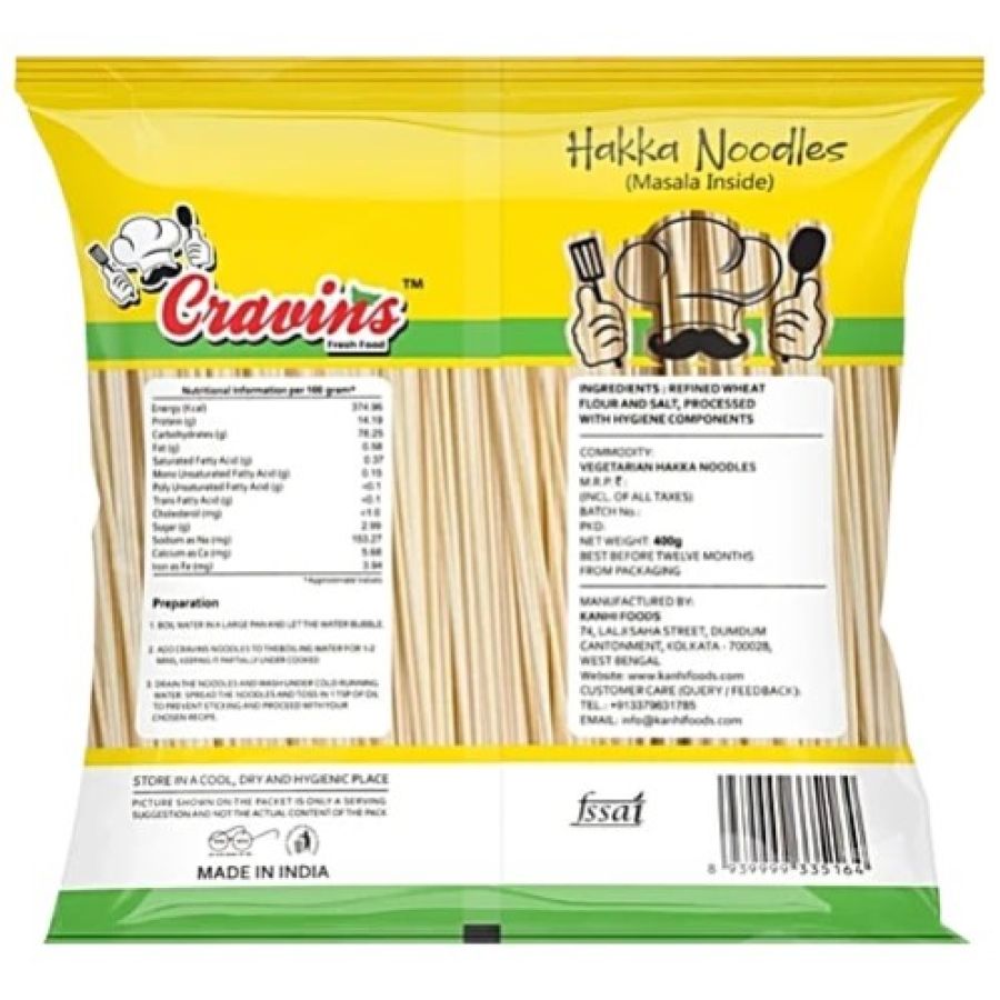 Cravins Vegetarian Hakka Noodles - Low Fat, No Added Preservatives, 400 g Pouch
