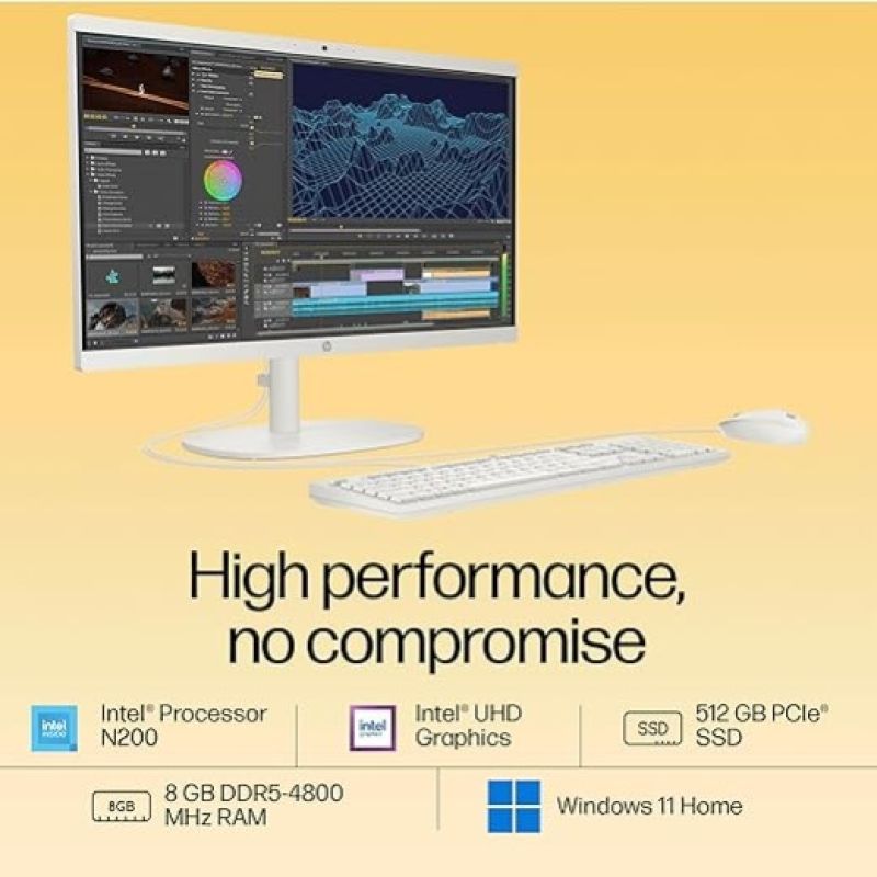 HP All-in-One PC, Intel Processor N200, 21.45-inch (54.5 cm), FHD, 8GB DDR5, 512GB SSD, Intel UHD Graphics, 720p HD Camera w/Privacy Shutter, Dual Speakers (Win 11, White, 4.17 kg), dg0154in